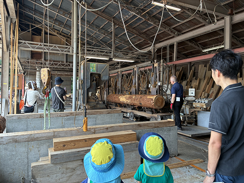 大きな丸太が製材され、一本一本の木材へと姿を変えていく様子は迫力があり木の力強さを感じられる時間です。