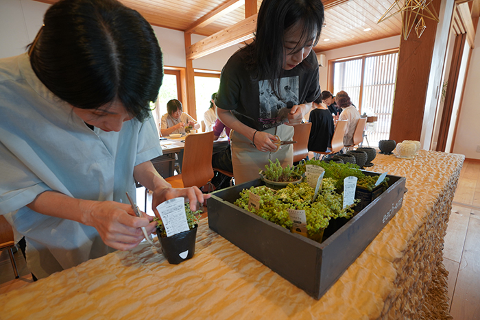 お皿に並んだ多肉たちも、大きさや色合いが様々で、皆さん楽しそうにお気に入りを選ばれていました。