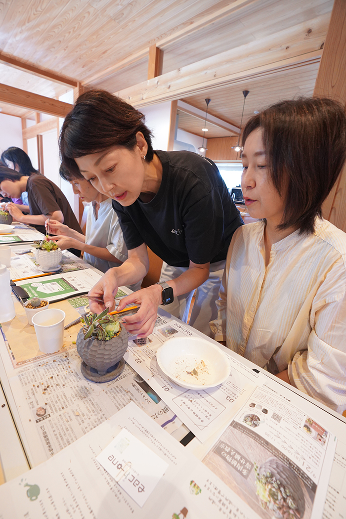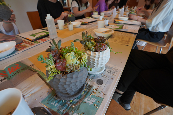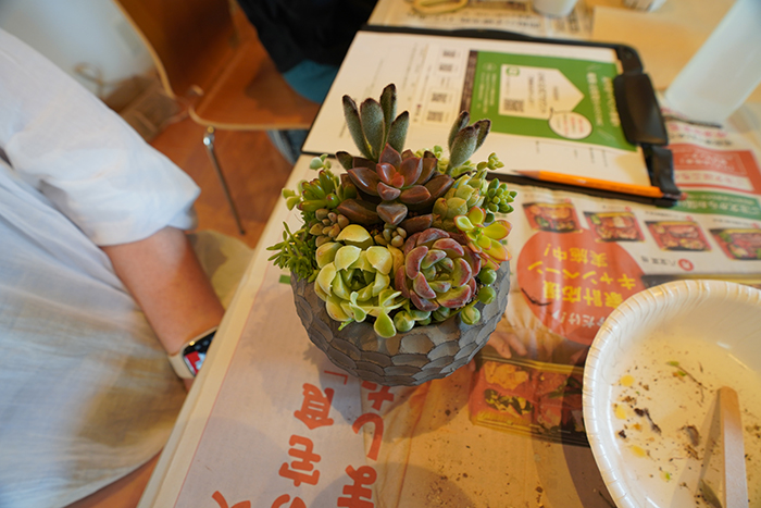 ぷっくりと可愛い多肉植物の魅力や育て方について教えていただきながら、寄せ植えを楽しむ教室となりました。