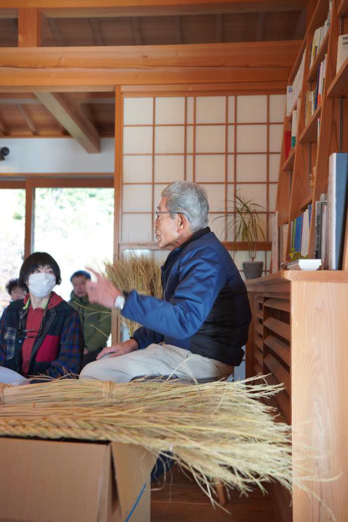 近藤さん「まずはワラが動かないようにカンッカンに結んで。手を下にもってきて、くっとする。こう、くっとする」