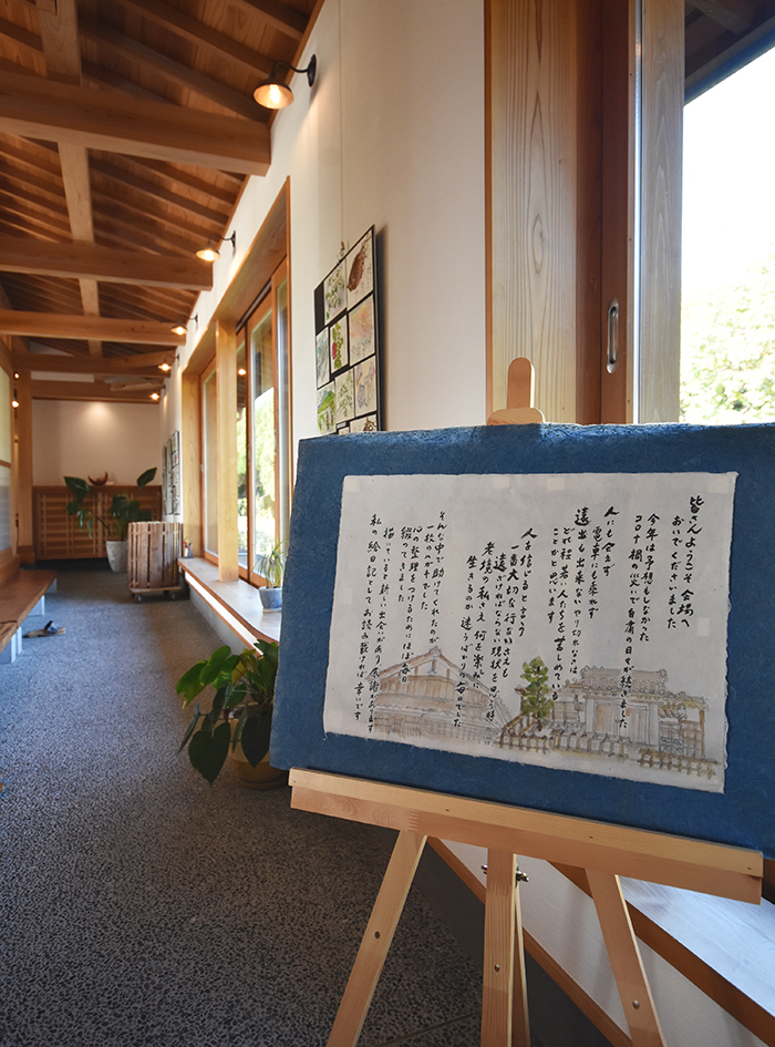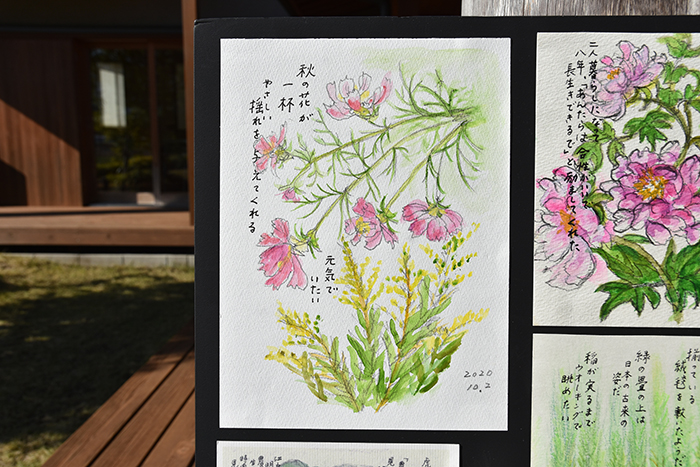 そんな中、ふくらの杜では現在、肥田文子さん絵手紙展~コロナ禍の中で暮らす日々~を開催中です。