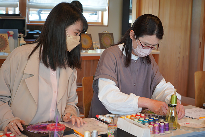 集中してつくる時間は、心が落ち着き、やがて美しい模様があらわれてくる不思議な感覚が体験できます。