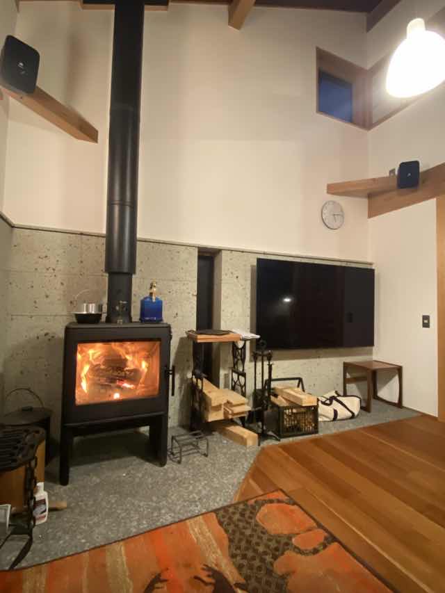特に冬場は薪ストーブの暮らしがお気に入りです、炎の揺らめきに癒されながら寒さを感じない暮らしです