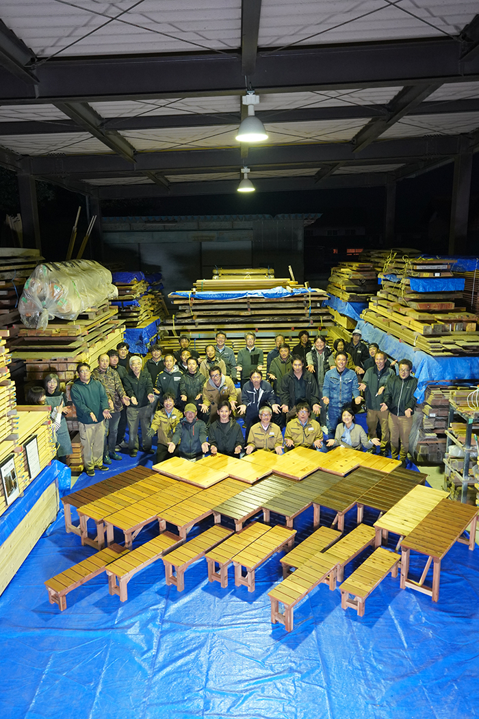 完成したテーブルとベンチは、匠の会会長と弊社社長がお届けに伺います。今年の寄贈先はすでに決まっていますが、毎年活動していますので、「うちも欲しい!」という方は、ぜひお気軽にお声がけくださいね。