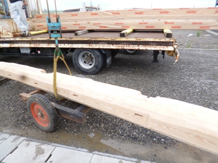 先日は、大工さん木小屋から 通柱、地棟の引き上げをしてきました。