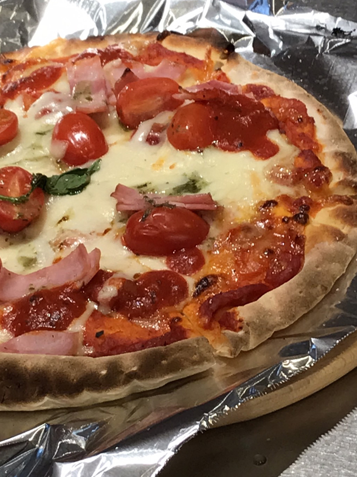 屋外で、ピザや焼マシュマロ、焼き芋を楽しみます。