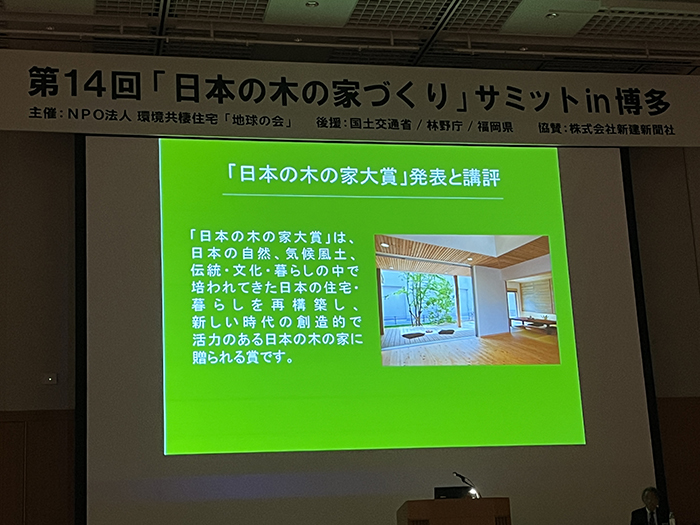 発表の場は、博多で開催された「日本の木の家づくり」サミット(主催:NPO法人 環境共棲住宅「地球の会」)。