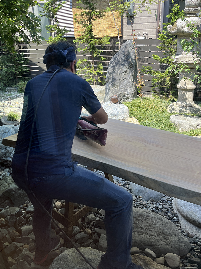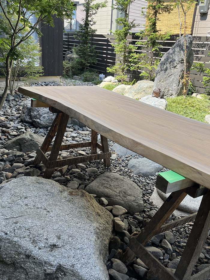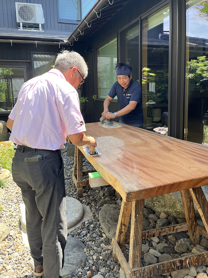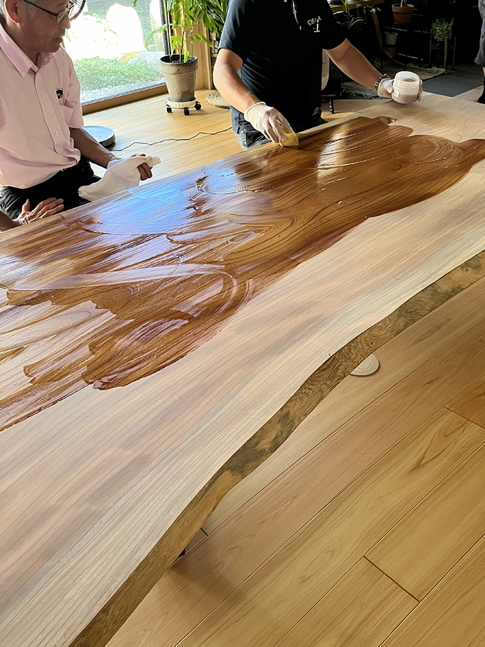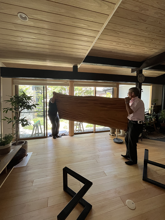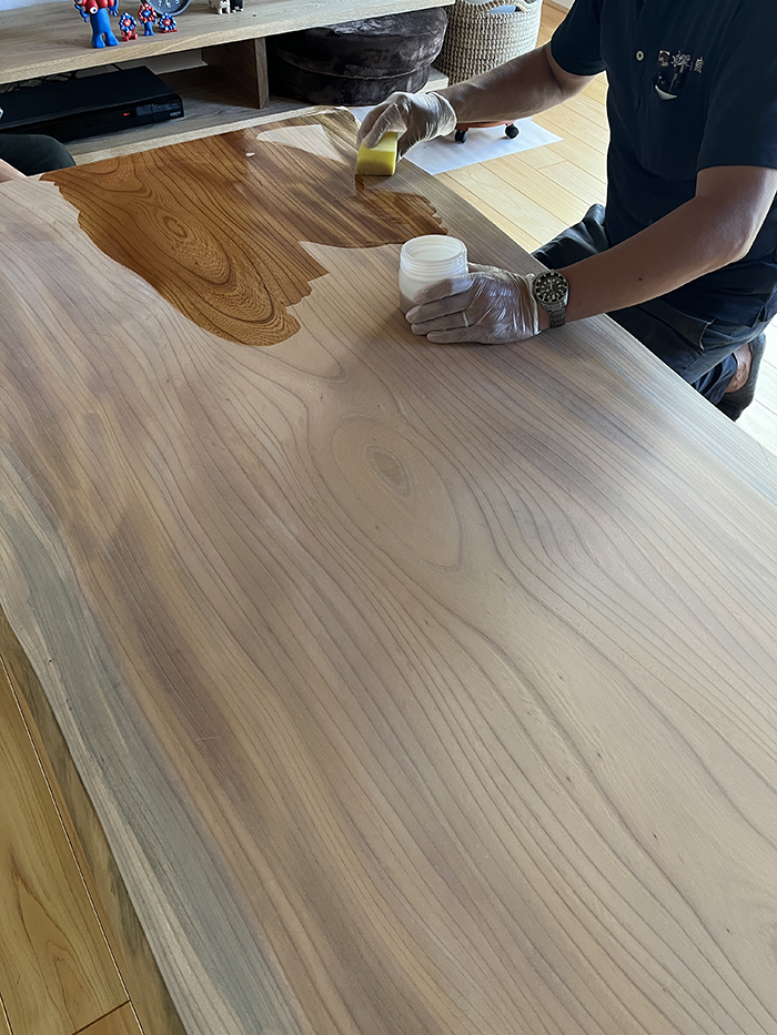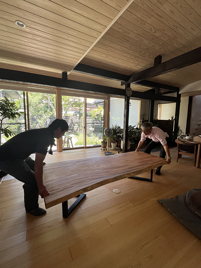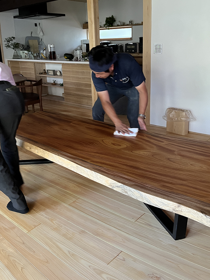 使い始めて半年ほどが経った夏、アドバイザー本庄さんから「一枚板テーブル、ちょっとメンテナンスしようか?」と!