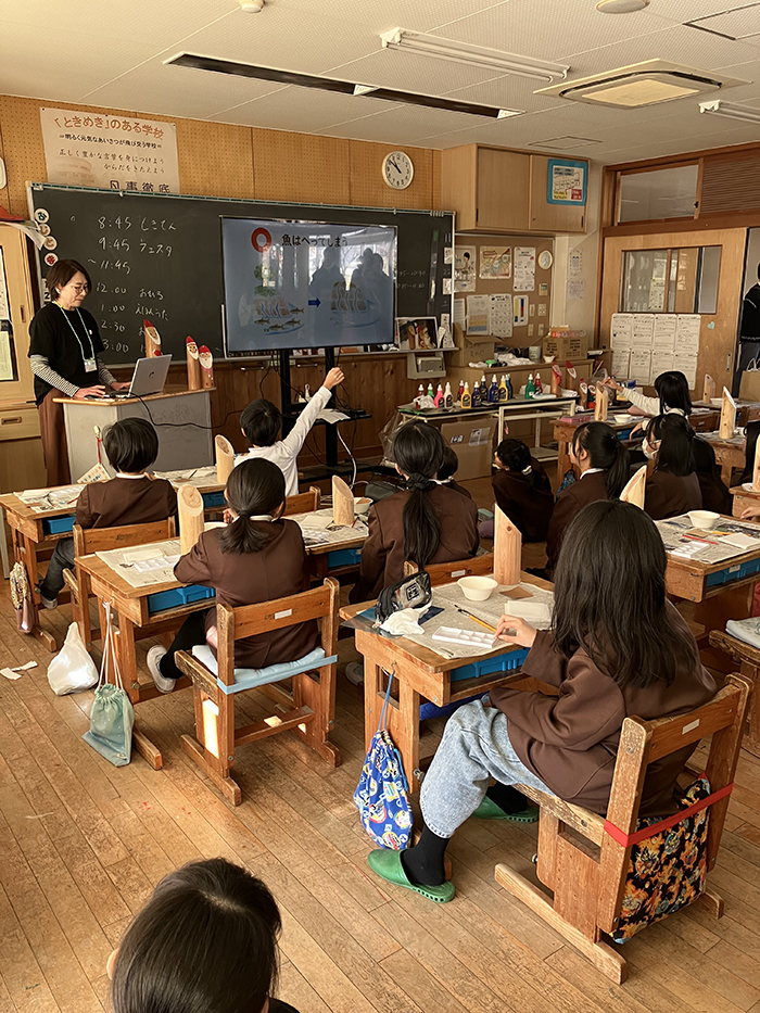 クイズに正解すると「よっしゃー!」と喜ぶ児童のみなさん。真剣に考えて答えてくれる姿がとても印象的でした。