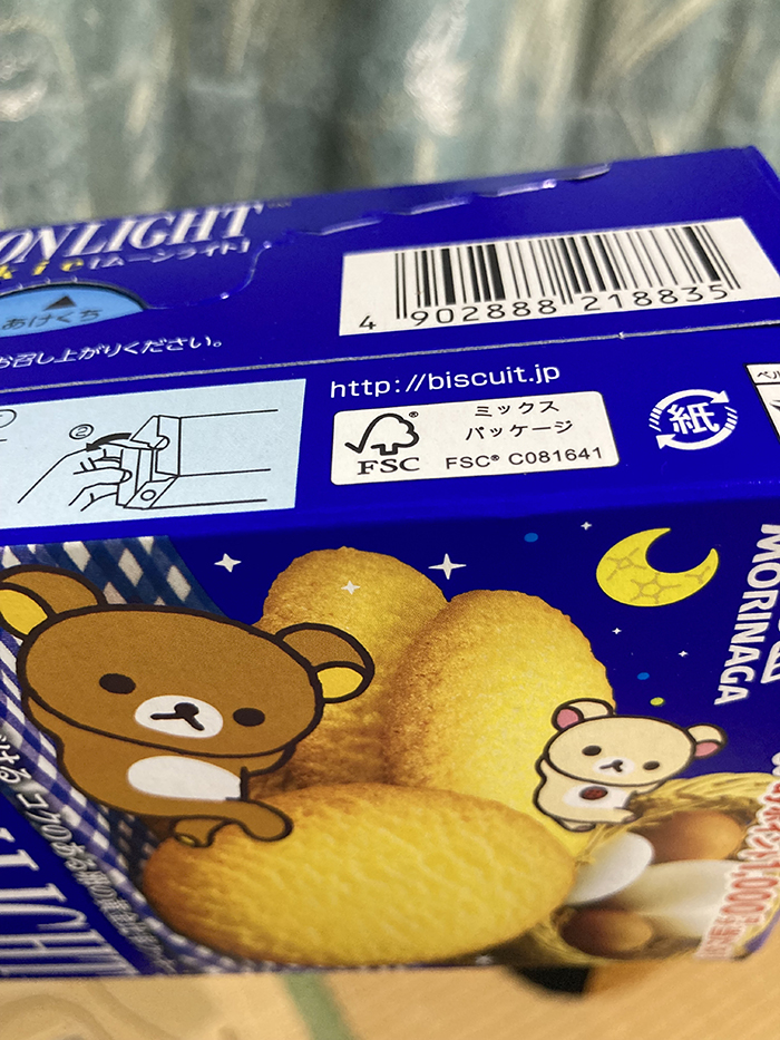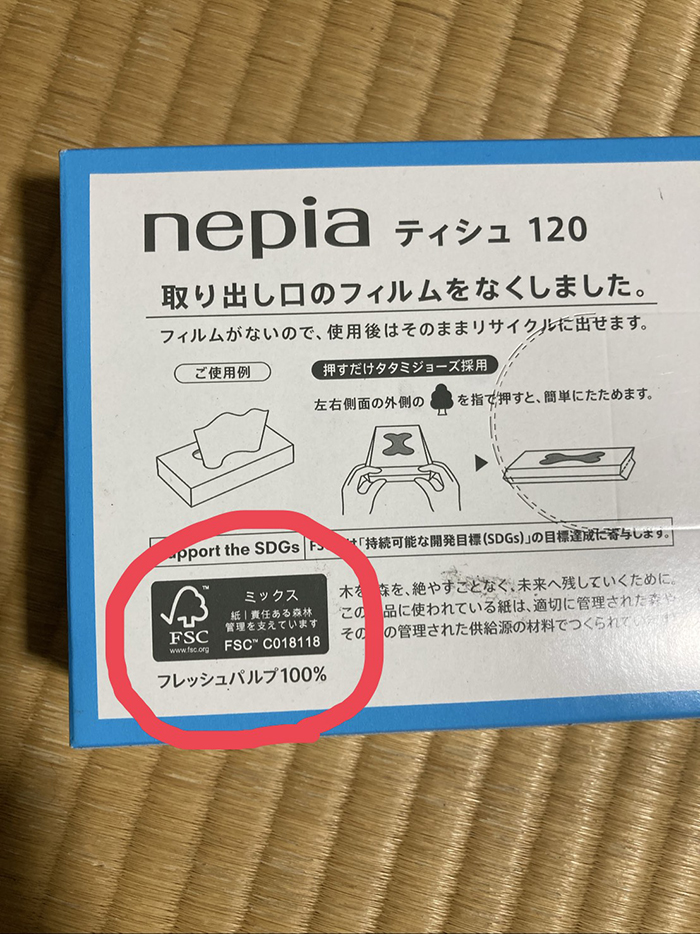 我が家で探してみると、ティッシュペーパーやお菓子の箱に!気にしてみてみると、多くの商品に利用されていて驚きました。