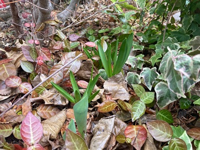 庭のヒヤシンスの芽もニョキと出てきていました。