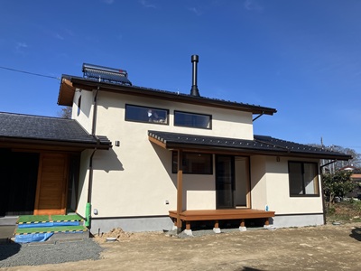F様邸は太陽熱温水器が設置されています。屋根が南に面していて日当たりがよく、太陽の熱でお湯をつくれ、光熱費を抑えることができます。