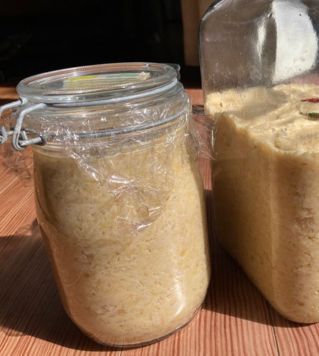 ※話はかわり~春が近づく頃に、「味噌つくり」をしています。今年も大豆を煮て、麹を混ぜ味噌を仕込みました。11月頃には発酵が進み味噌の完成です!