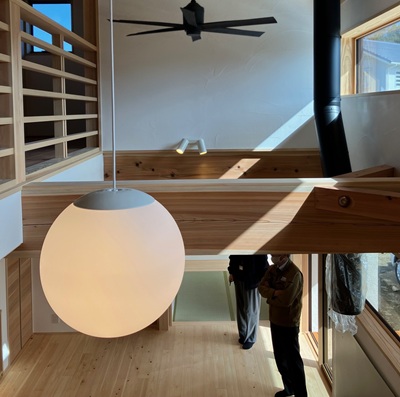 吹抜けの高窓からリビングダイニング・2階に光を届ける、繋がり間取りになっています。高窓の効果、繋がり間取りの良さの再確認をしました。