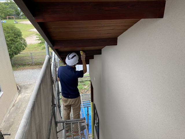 また、木の目によって塗料が付きやすい付きにくいもありますので、塗料の付きが薄い部分や塗装が剥がれた箇所のタッチアップをします。