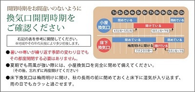 雨風が強くなる場合には、屋根換気口を閉めていただくようお願いいたします。