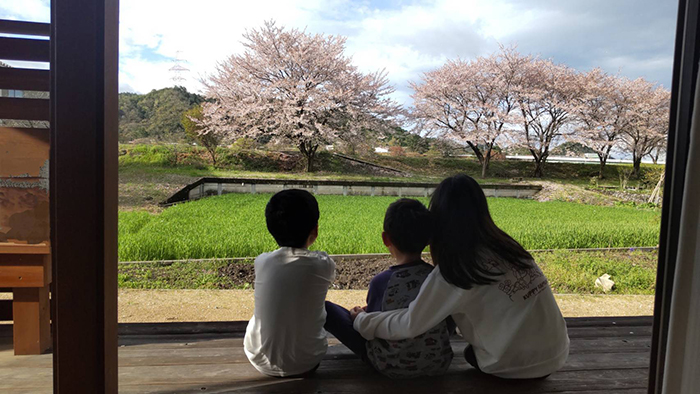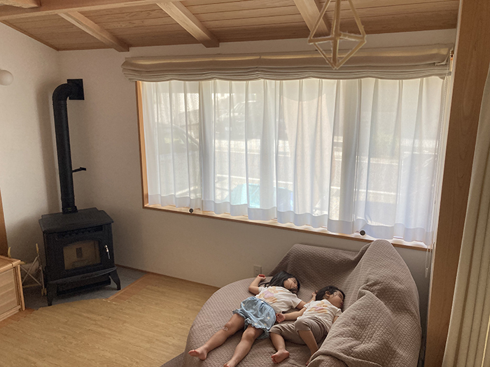 ご縁あって、第四回 木の家の暮らしの写真展に応募させてもらってから、五年がたちました。当時と同じアングルで、今年春に撮影してみました。変わらない温かな木の家や風景の中に、子どもたちの大きな成長の変化を感じられ、少し淋しくも、とても嬉しくも感じる1枚です。
