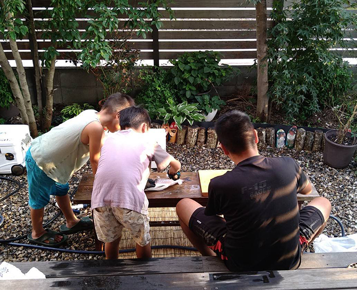 季節ごとのイベントをお気に入りのウッドデッキで行う我が家。今年から、自分たちで釣った魚を自分たちの手で鱗取りから内臓処理、捌いて食べるまでの作業も行うようになりました。家族の力が一致団結するからこそおいしいご飯が食べられる。それは、ステキなお家があってこそです。
