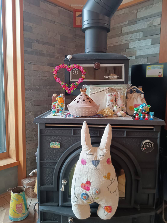 今までに作った物、お気に入りの物を飾って…そしてそれを眺めながらTVを観たり、パッチワークやダーニング刺繍、最近始めた編み物(靴下編みに挑戦中)等…慌ただしい日中から解放されほっこりする時間を過ごしています。そしてまた明日も頑張ろう!って思います。