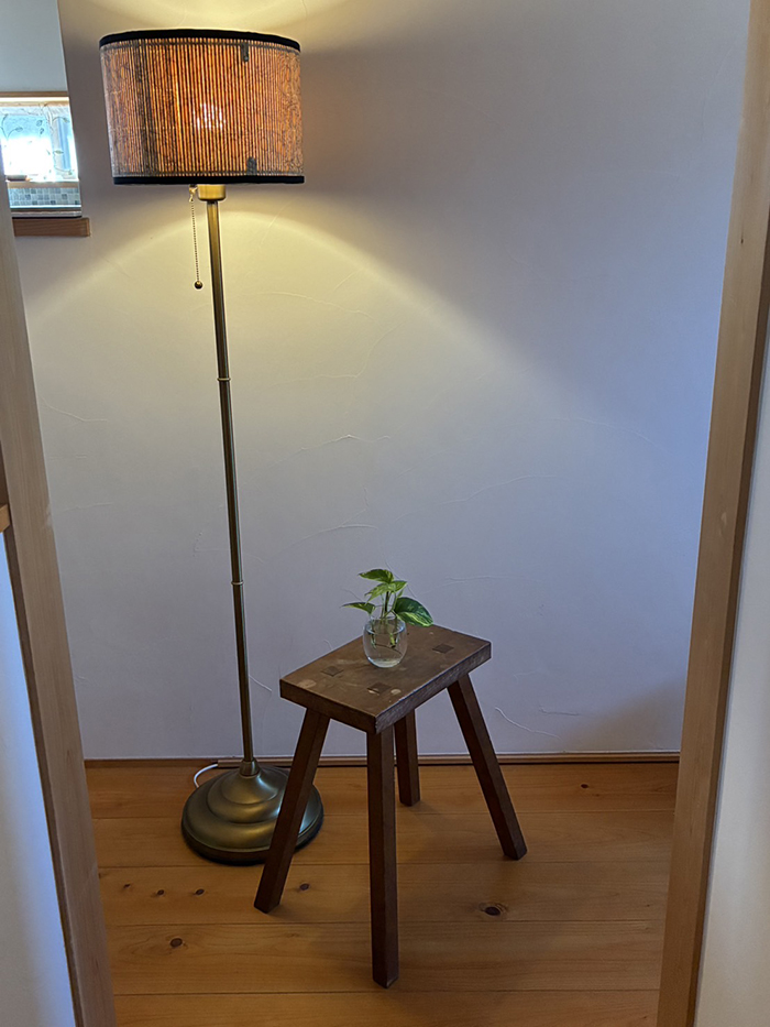 今は亡き父が50年くらい前に作った踏み台とお気に入りのフロアライトです