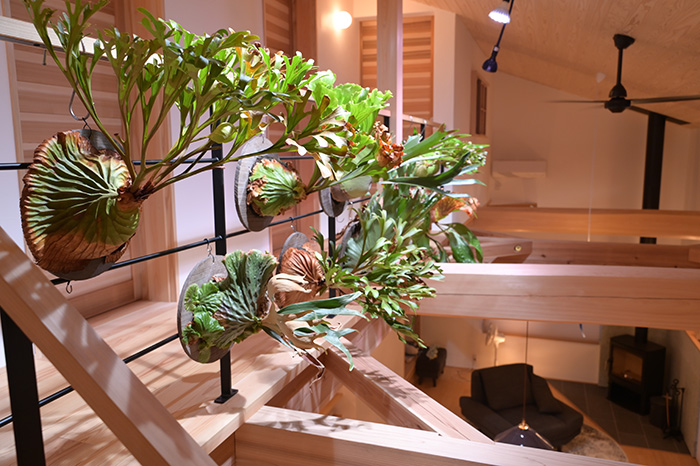 廊下の手すりで、板付けにしたビカクシダを育てています。日々、成長する様子を見るのが楽しみです。