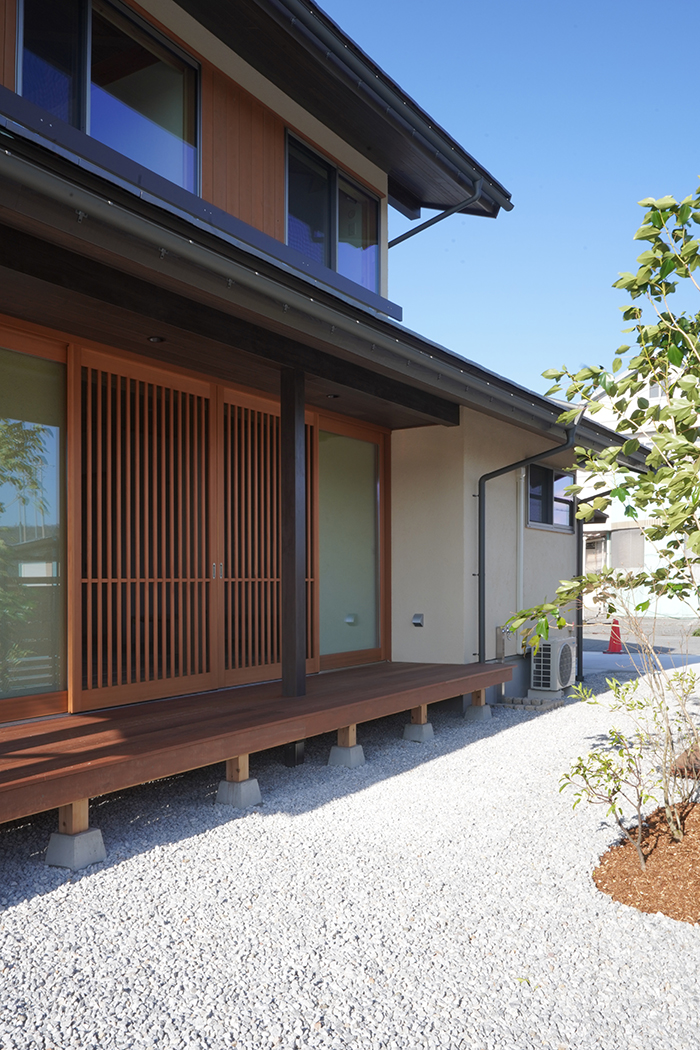 土間、深い庇、どっしりとした骨太の柱や梁など、昔ながらの湖北の家の良いところを現代の住まいに活かしています。