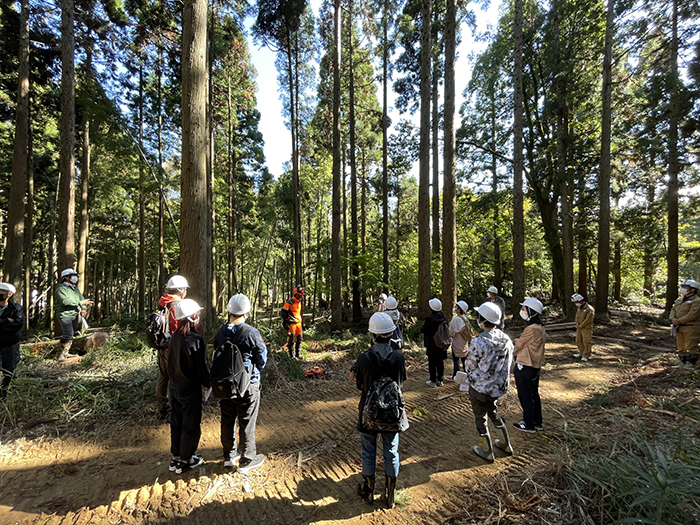 長浜市北部の山林で、実際に山の木を見て、触れて、感じていただきます。