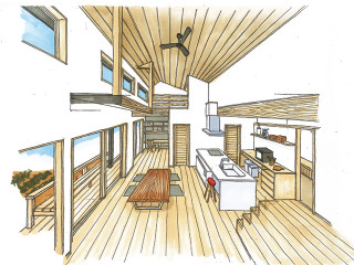 ゆっくりと団らんを楽しめるほっこりとした木の家。