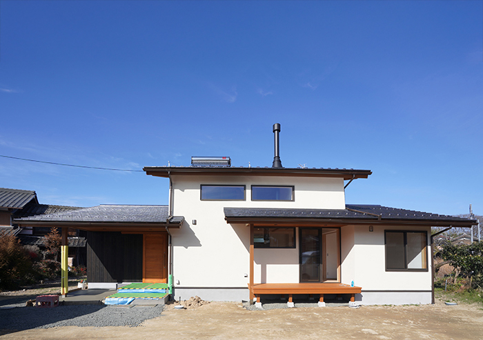 (屋根には太陽熱温水器を設置。自然エネルギーを活かす暮らし)