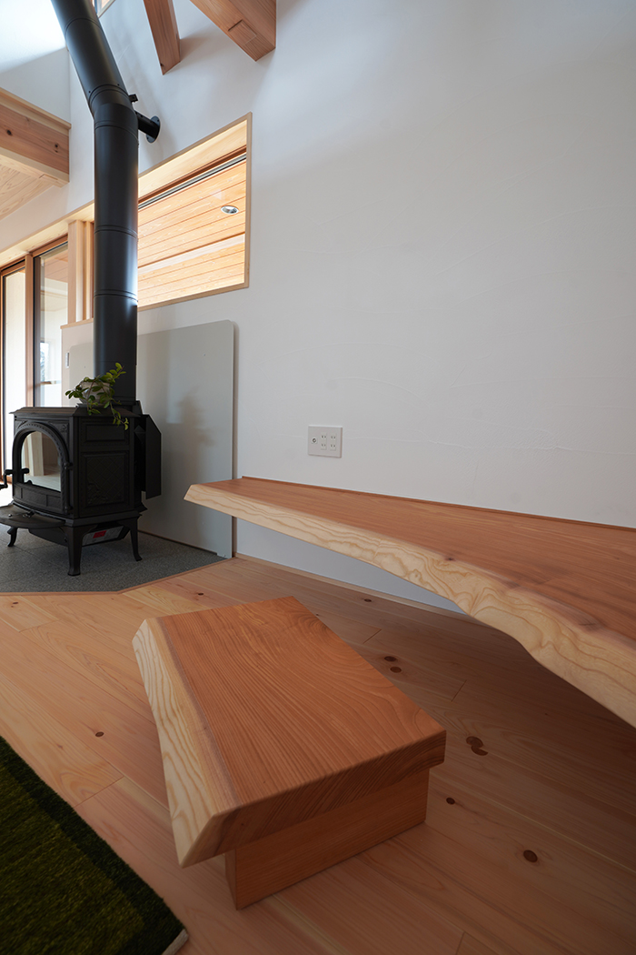 ▼階段の一段目二段目は、立派な一枚板を使いました