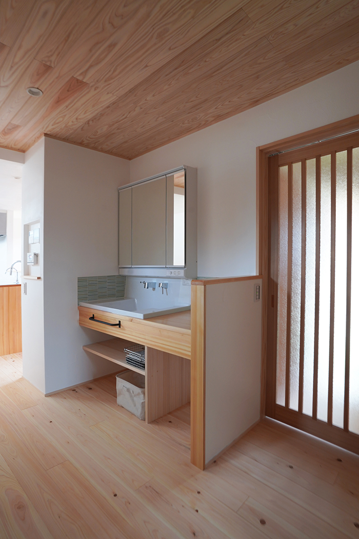 ▼こだわり動線のひとつ、洗面コーナー。帰宅後に直行もできます