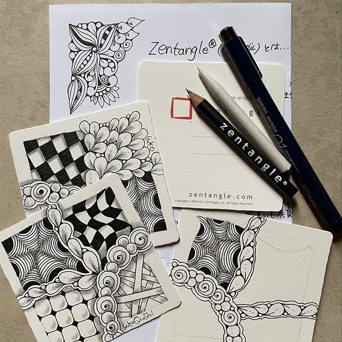 Zen(禅)とTangle(絡まる)を合わせた造語で、簡単なパターンを繰り返し描くだけで、素敵な作品を完成させられるアートメソッドです。