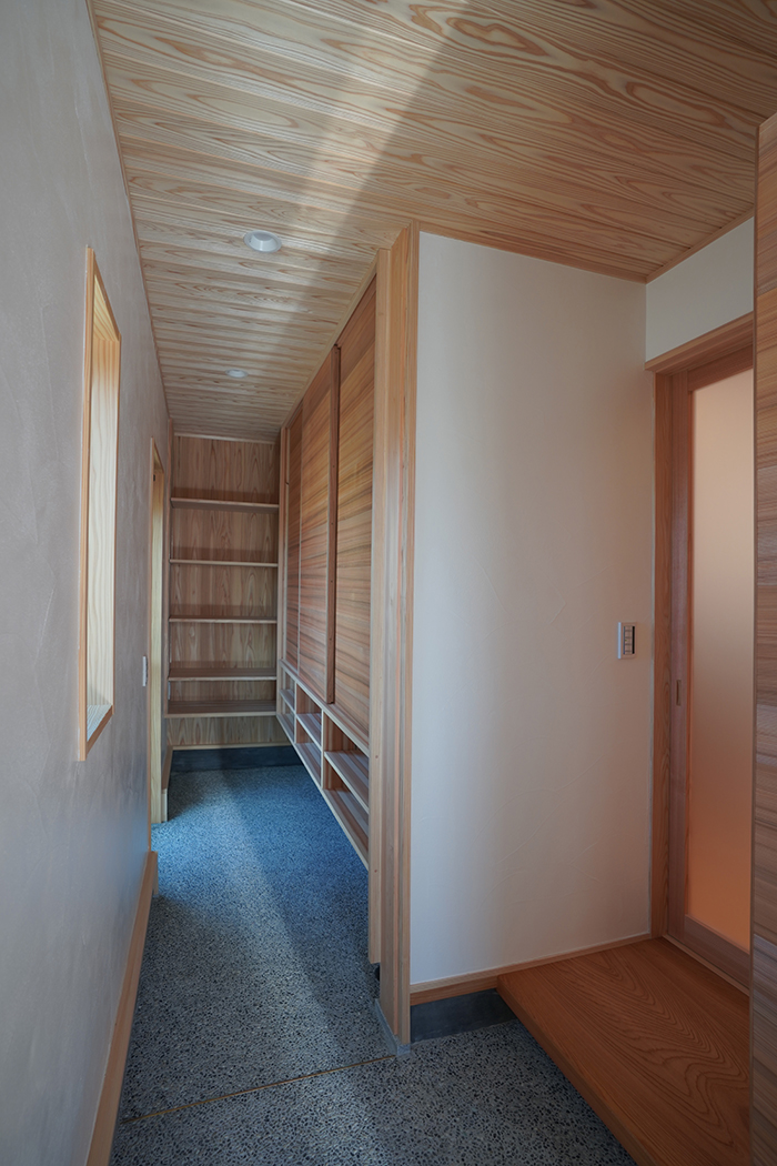 玄関を入ると、奥には大容量の家族用玄関収納。いつもスッキリと美しい玄関で来客をお迎えできます。