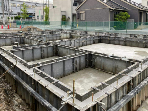 立ち上がり部の型枠を組み、生コンクリートを打設しました。生コンクリートをしっかり乾燥させて型枠を解体します。間もなく基礎工事完了です。