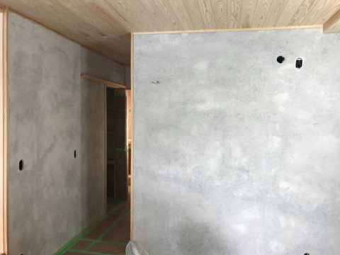 内壁の下塗り作業をおこなっています。このあと漆喰塗りへとすすみます。