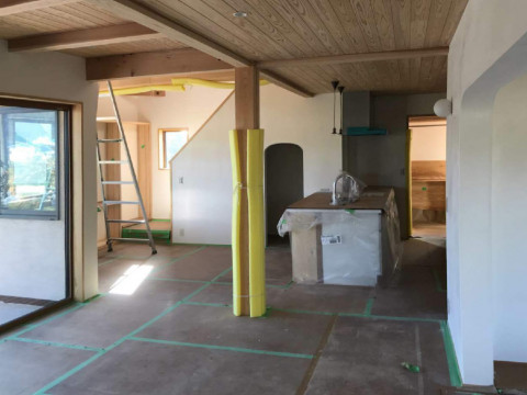 漆喰塗りが完了しました。続いて照明器具などの器具付けがすすんでいます。