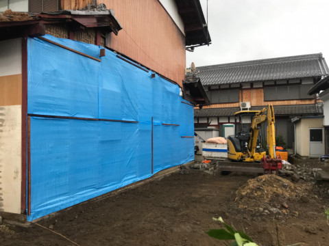 離れの解体が完了しました。母屋側は繋ぎ工事をおこなうまでしっかり養生しておきます。