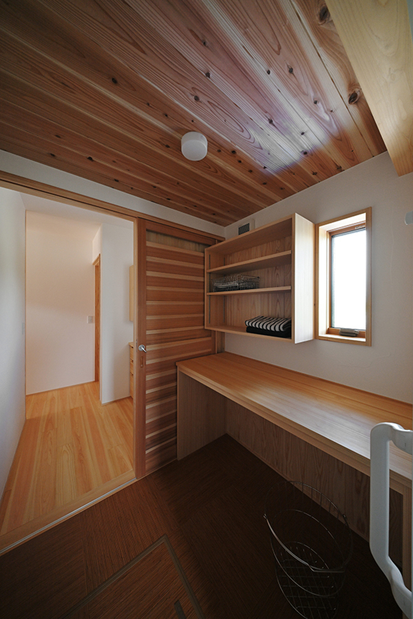 リビングの一角に設けた書斎スペース。奥様のワークスペースとして、将来はお子様と並んで宿題ができる場所にもなります。