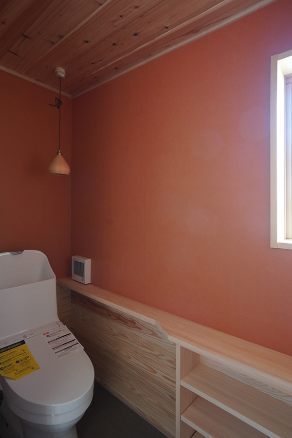 和紙の繊細な色や素材感が空間をやわらかに彩るトイレ。使用した玉紙(たまがみ)は超撥水和紙壁紙で、和紙本来の持ち味をそのままに、撥水性、防汚性をプラス。
