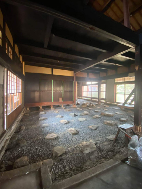 内部の解体がはじまりました。家を支える大事な柱や梁は残し、床組みの撤去が完了しています。