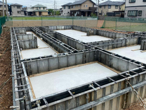 型枠の解体と土間の増し打ちをおこないました。しっかりとした基礎の完成です。