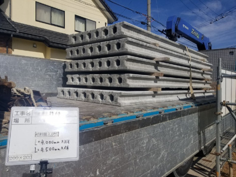 土地の改良工事がはじまります。高強度のコンクリートの中にPC鋼の撚り線を入れたH型PCパイルを使った地盤改良をおこないます。