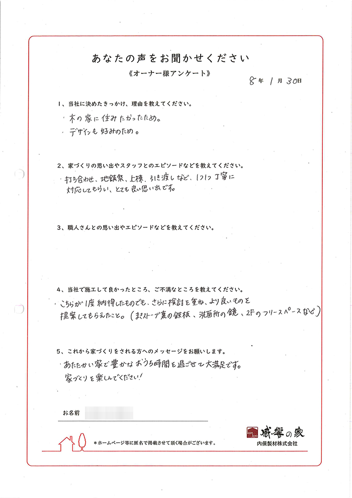 あたたかい家で豊かなおうち時間を過ごせて大満足です。家づくりを楽しんでください!