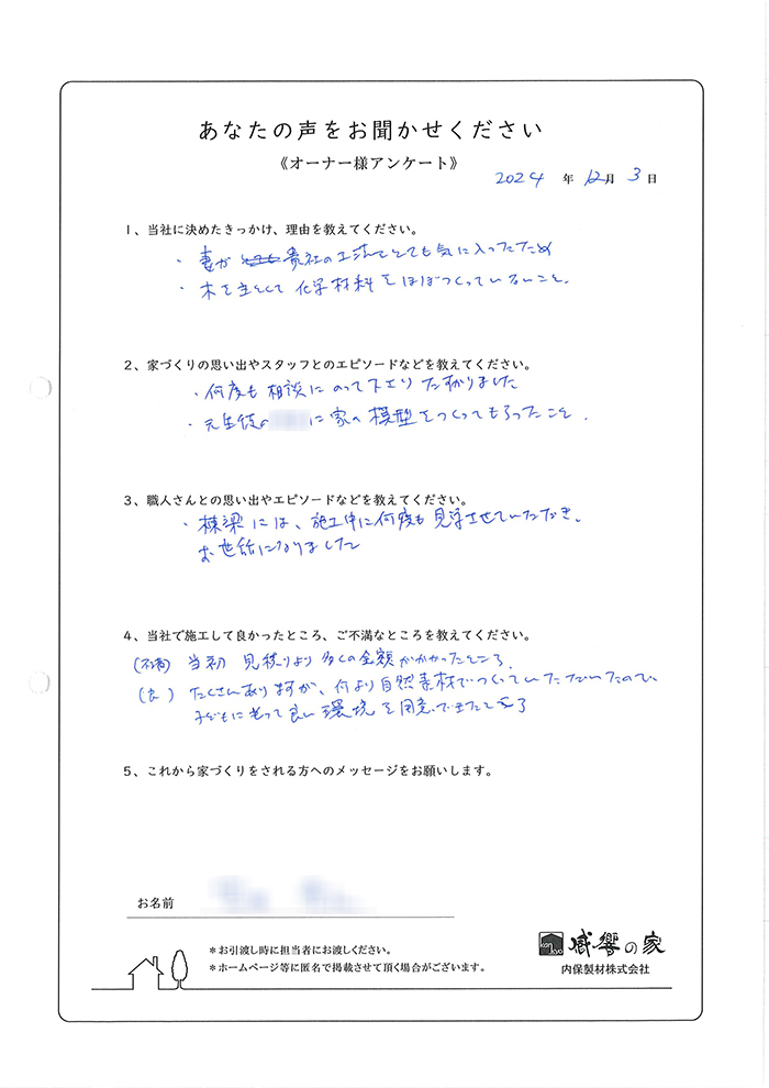 ・妻が貴社の工法をとても気に入っていたため。