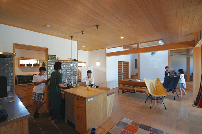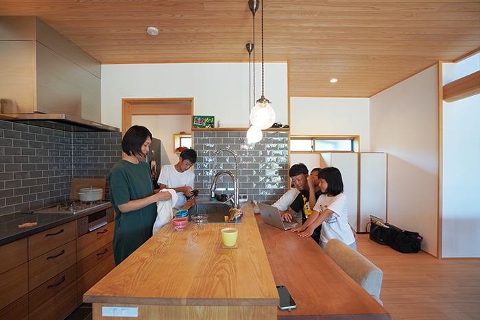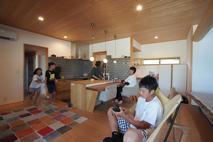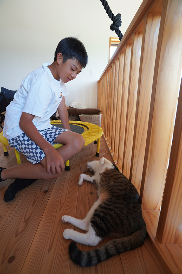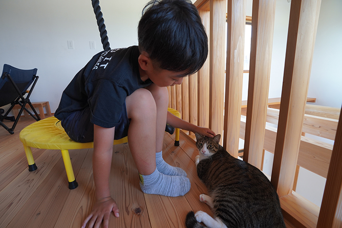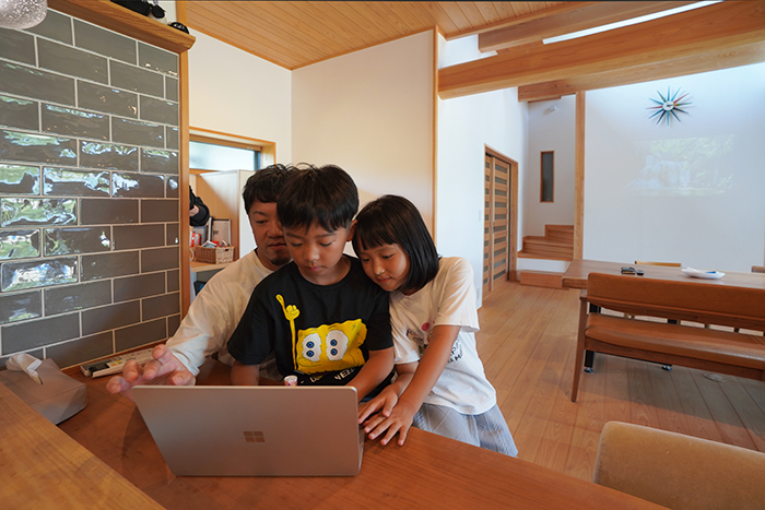 3人のお子様と2匹の猫、ホームステイのゲストも加わったK様ご家族の暮らしは、笑顔とあたたかさにあふれています。中学生の長男Sくんの「ずっとここに住みたい」という言葉に、家族の日々の幸せを感じました。(広報企画:髙山)